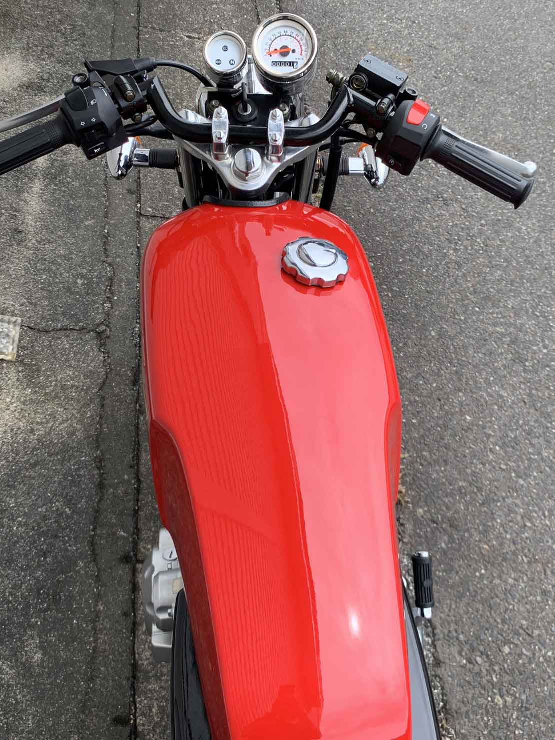 赤色は、燃料タンク形状とハンドル、シートが違います。シートカウルを外せばタンデムも
